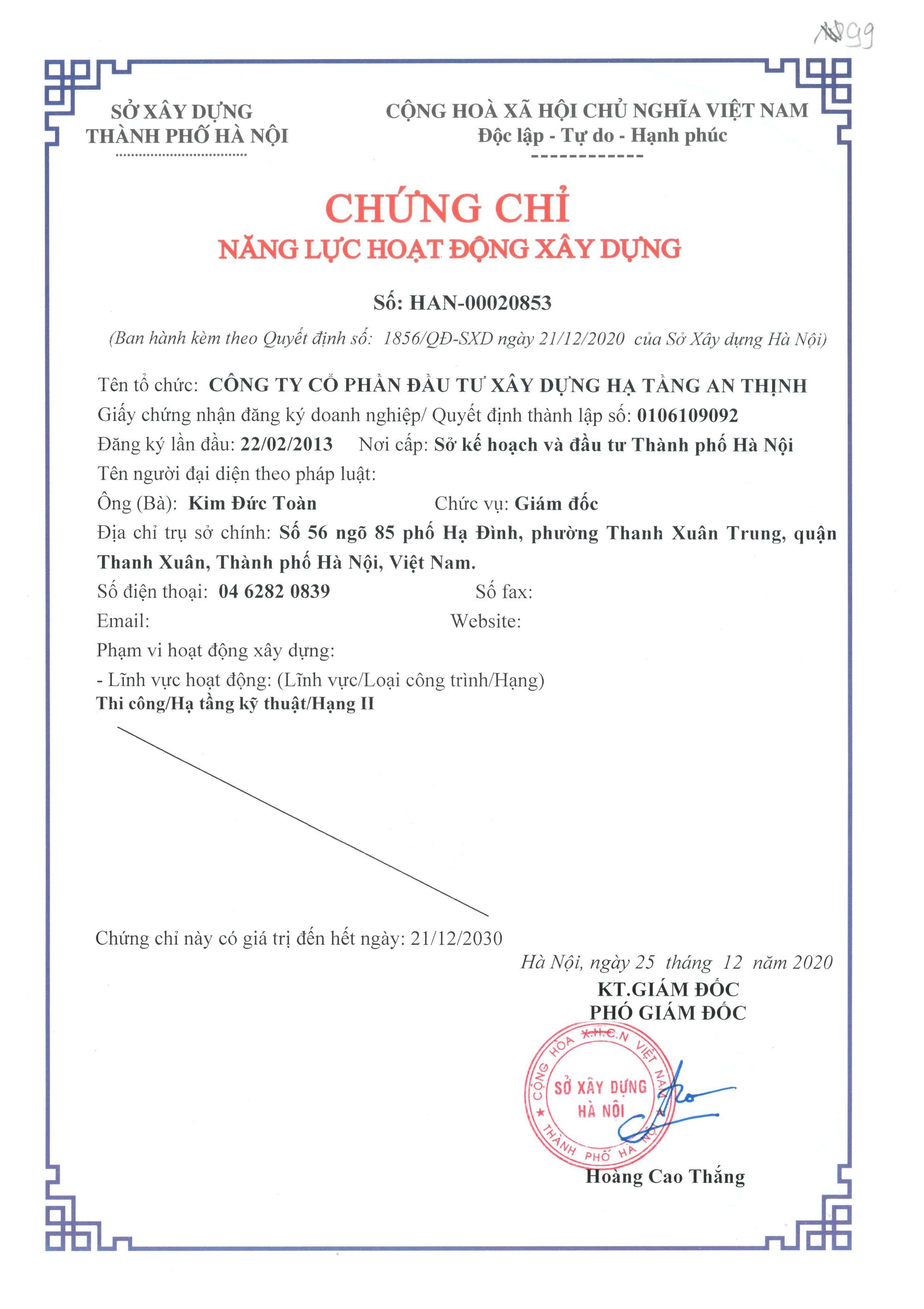 Chứng chỉ năng lực hoạt động xây dựng